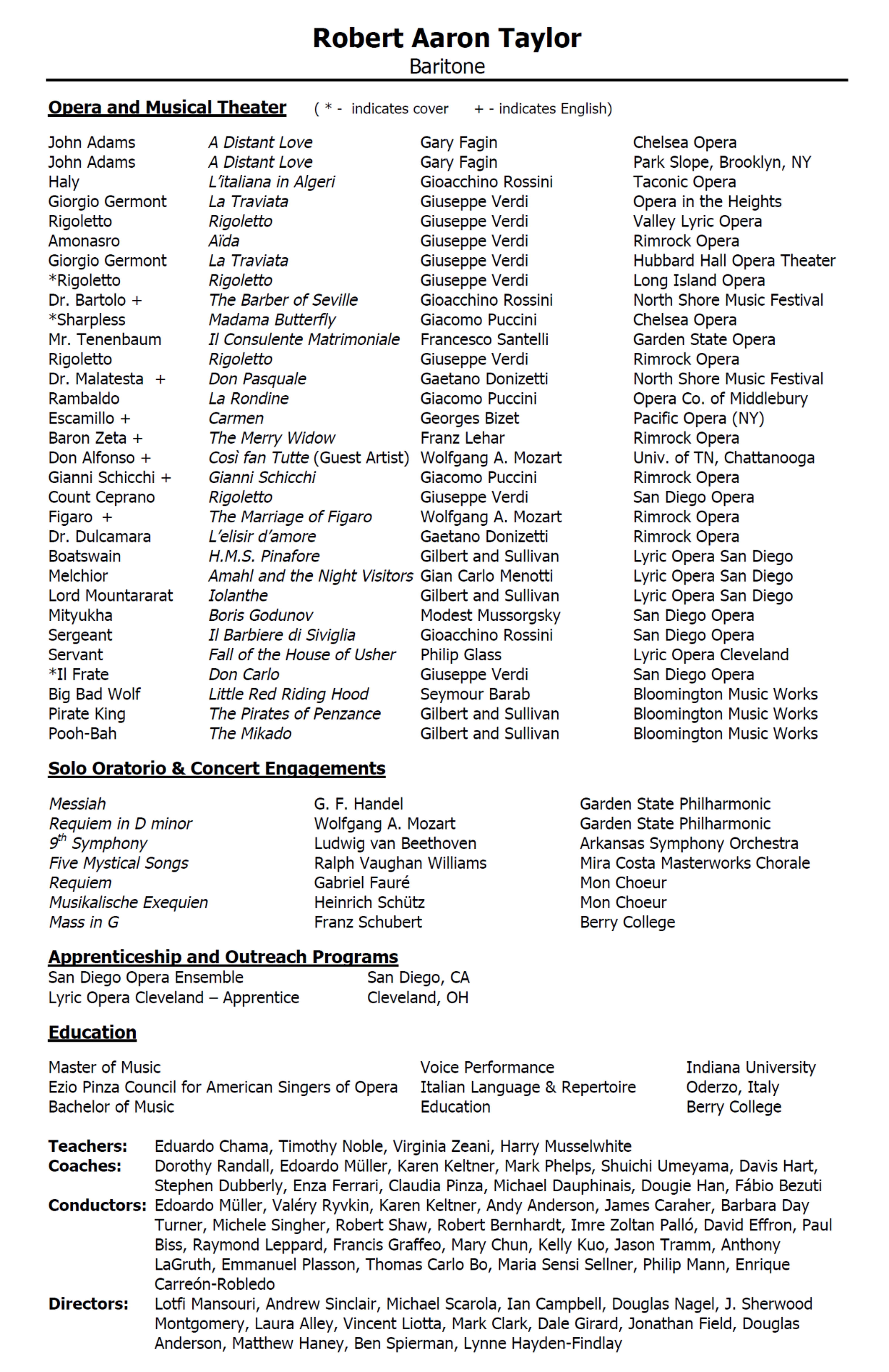 Performing Artist and Voice Teacher